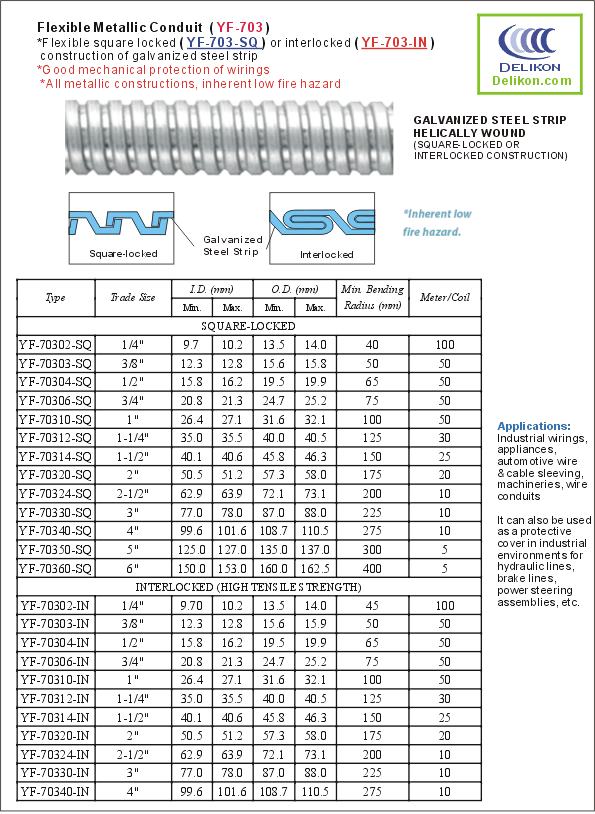 Steel Reinforced Metal Conduit (Model: YF-703-IN)